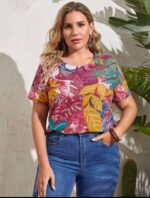 SHEIN Essnce تي شيرت موحدة اللون اكمام جناح الخفاش مقاس كبير