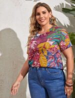 SHEIN LUNE فستان نسائي بأكمام مكشكشة وطبعة زهور للمقاسات الكبيرة والمرأة العصرية