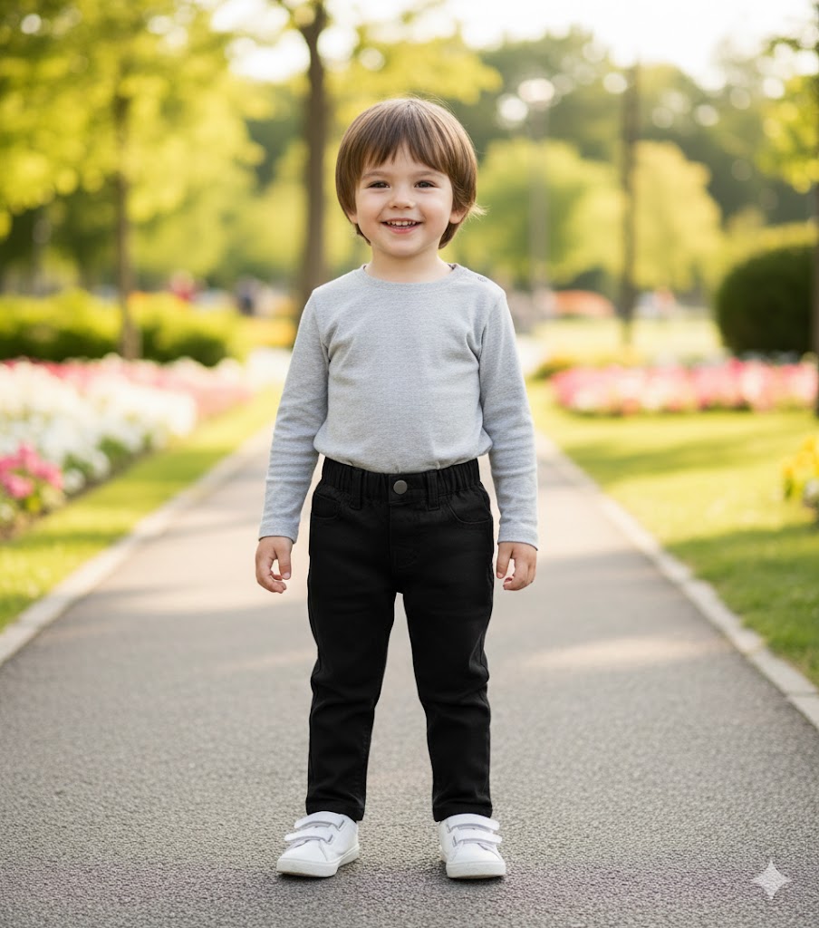 بنطلون جينز موحدة اللون جيب مائل تفاصيل ازرار للاولاد الاطفال