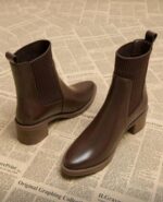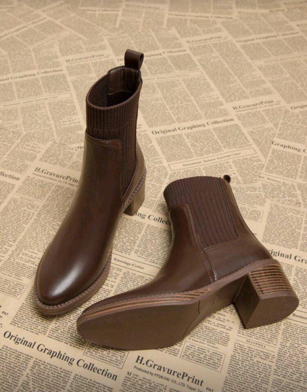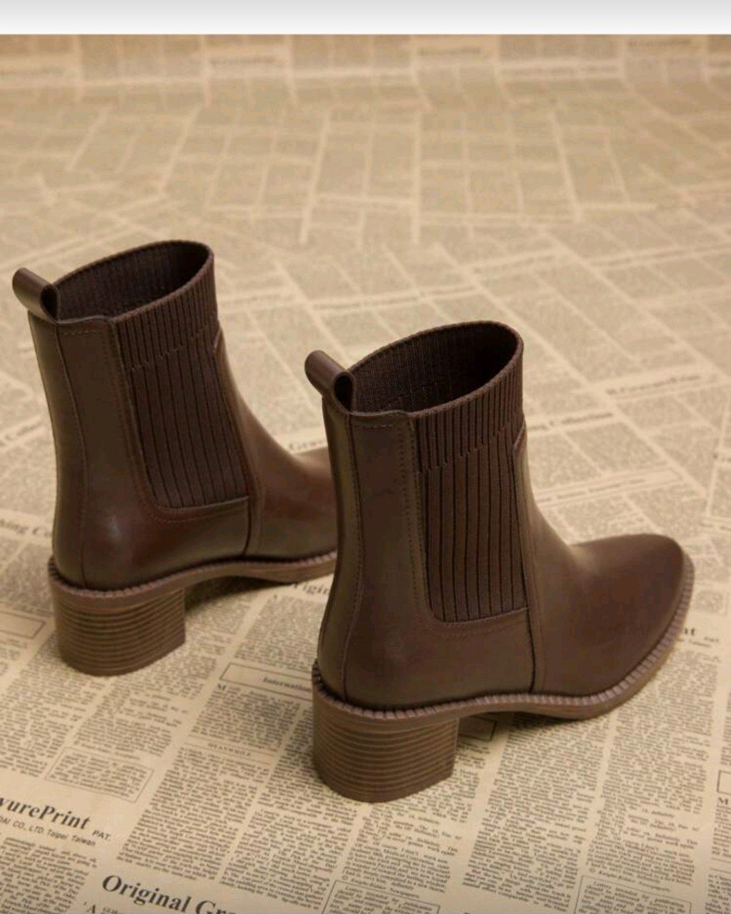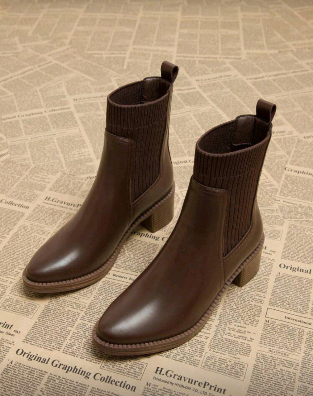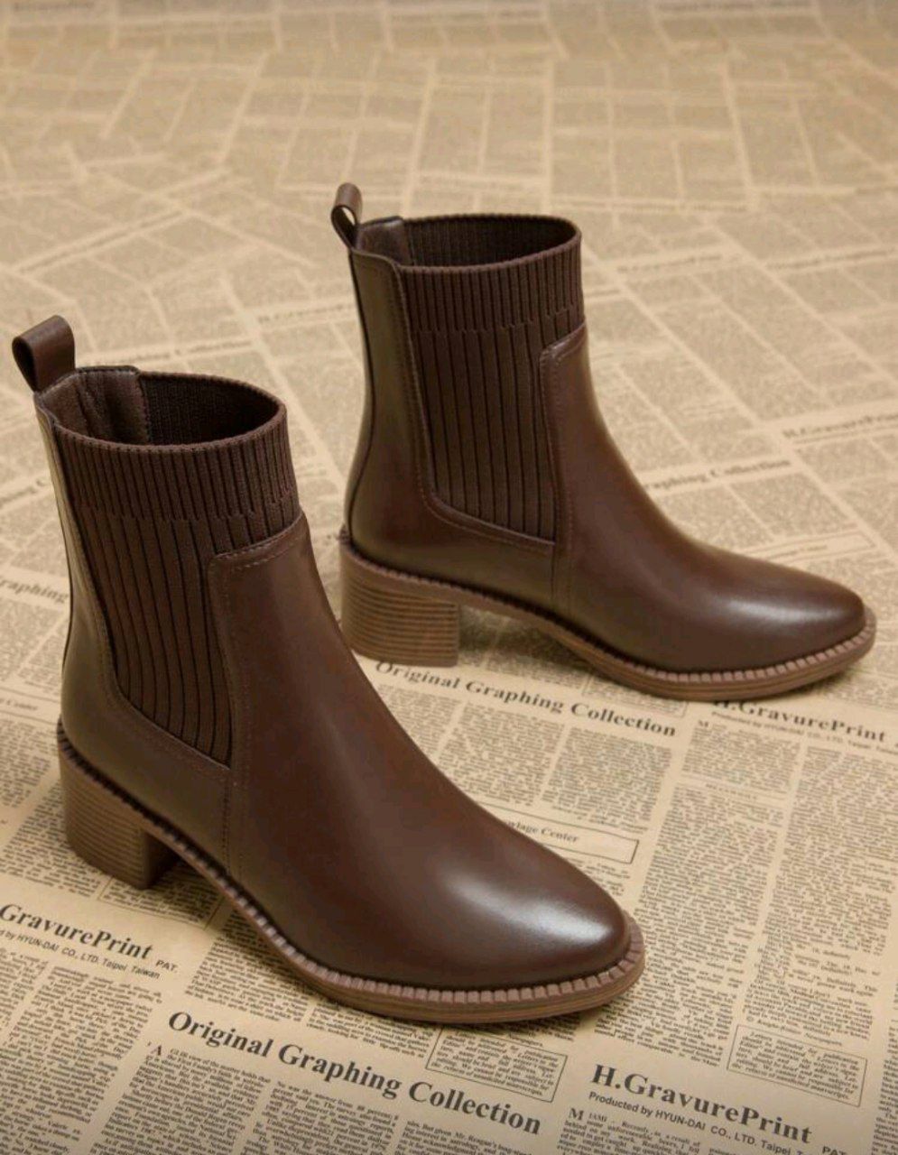 بوت قصير للنساء بنقشة حادة لموسم الخريف/الشتاء 2024، لونان، بكعب سميك وسوة سميكة، بني وأسودرمضان
