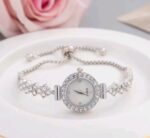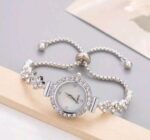 1قطعة ساعة نسائية كلاسيكية وعتيقة بسوار كوارتز مع 1قطعة سوار ورقة فضية قابل للتعديل مفتوح كهدية للطلاب العودة إلى المدرسة