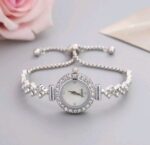 ساعة معصم نسائية كاجوال موضة جديدة بقرص دائري جميل مزين بكريستال وحزام ساعة مرصع بحجارة الراين، ساعة كوارتز فاخرة من السبيكة، هدية للنساء كهدية للطلاب العائدين إلى المدرسة