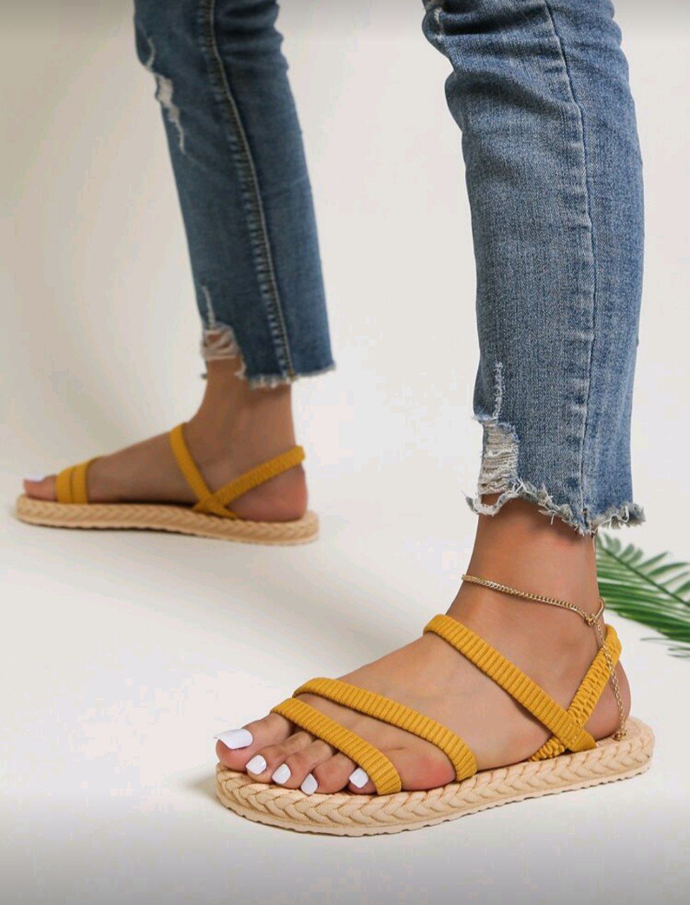 صنادل مسطح حزام متعدد مفتوح الوراء عطلة خارجي البوليستر امرأة