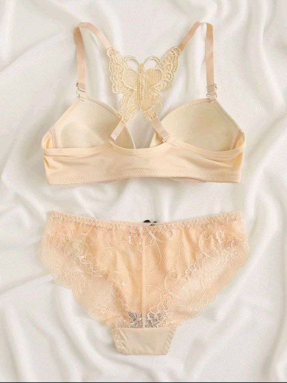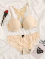 طقم سوتيان ولباس داخلي نسائي من الدانتيل مع حمالة وسلكي