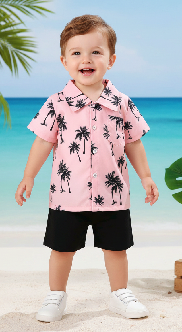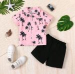 الرئيسية اطفال قميص بولو شبابي عارض مطبوع بنباتات يأتي مع اكمام قصيرة وسروال صلب بلون واحد للصيف