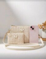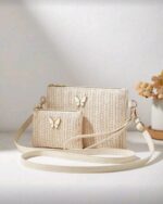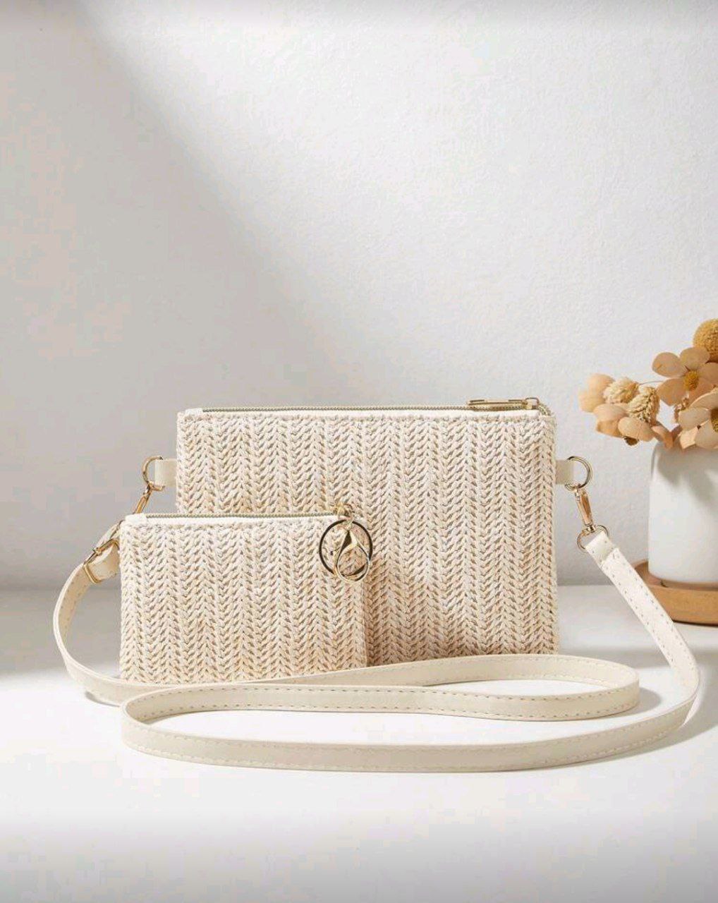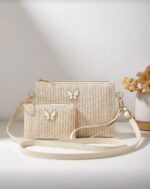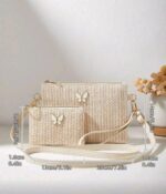 مجموعة من 2 قطعة: حقيبة كتف قش أنيقة جديدة، حقيبة كروس بودي، حقيبة كلاتش، محفظة عملات شنطه جامعه شنط جامعات شنطة ظهر للسفر حقيبه جامعه