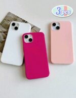 3 قطع علبة هاتف بألوان داعمة للدوبامين بطراز بسيط، درجات لون الجيلي الأبيض/الوردي/الأحمر الوردي