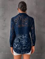 Aveloria بلوزة كاجوال أعمال أنيقة بأزرار أمامية شفافة للنساء بدون حمالة ، أكمام طويلة