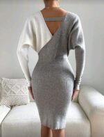 Chiquease فستان صوفي لونين كفة محبوك مضلع بقص خلفي