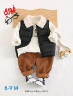Cozy Pixies 3 قطع مجموعة أطفال ذكور: بلوزة رياضية بياقة طاقم بطباعة حروف, سترة ثرمال مبطنة, وبنطلون جوجر بخصر مطاطي
