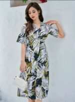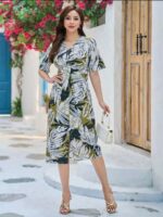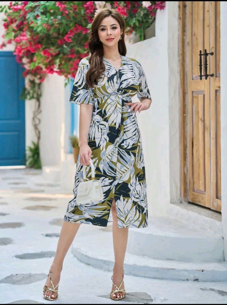 DAZY فستان نسائي أنيق بطبعة زهرية على الجسم بتصميم ملتف متوسط الطول، ملابس صيفية للعطلات