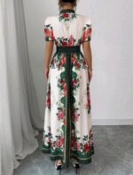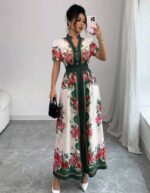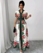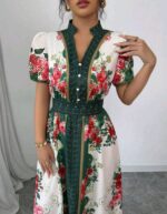 Elenzga فستان طباعة زهرية مع طوق عالي وأكمام منتفخة للعطلات