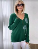 EMERY ROSE كنزة صوف موحدة اللون منسوج مضفور بياقة V