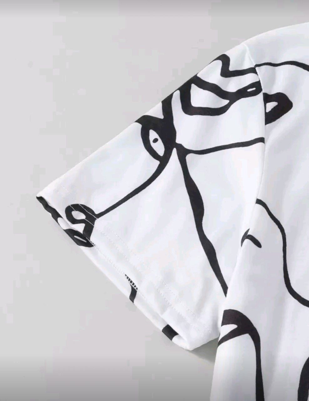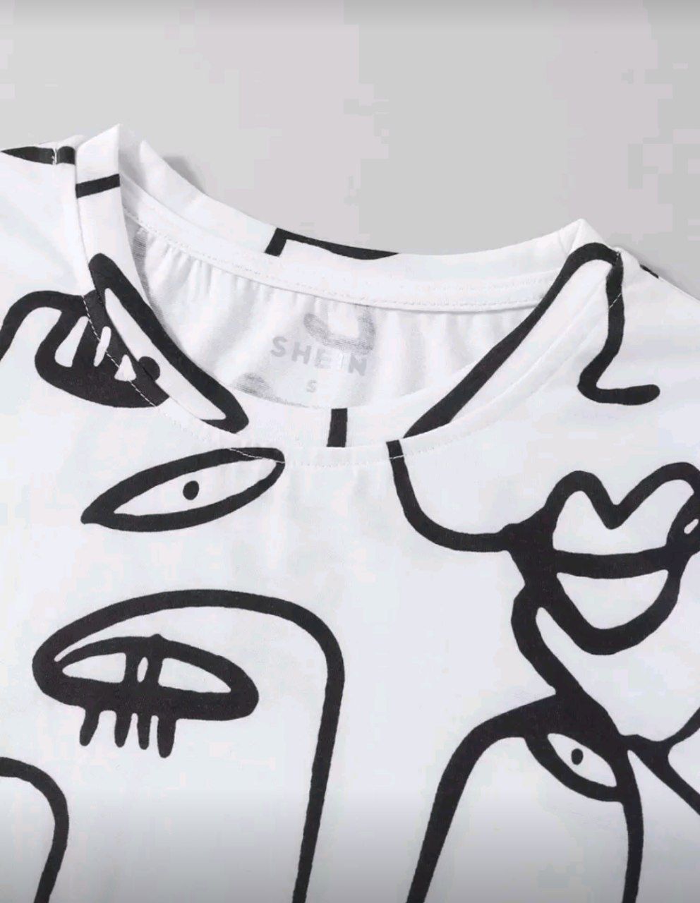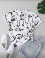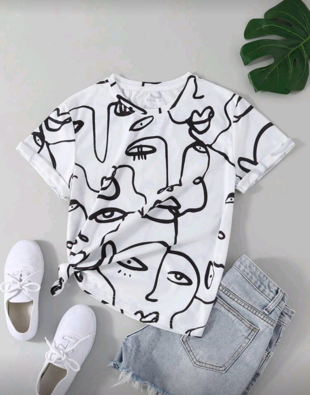 INAWLY تي شيرت جرافيك شكل ياقة دائري