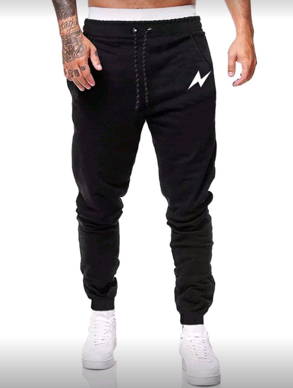 ROMWE MEN Casual بنطلون رياضي للرجال طقم مكون من 2 قطع بطبعة البرق، للاستخدام المدرسي