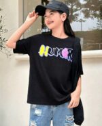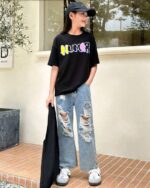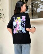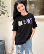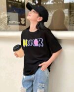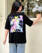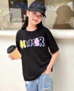 SHEIN تي-شيرت قصيرة الأكمام من الصوف الخالص المطبوعة بنمط الدب لفتيات المراهقة ، خط العنق المستدير