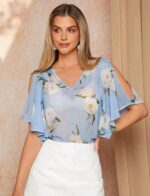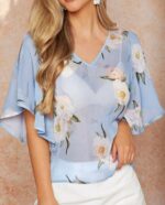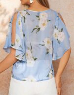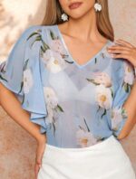 SHEIN VCAY بلوزة بطباعة أزهار اقحوان خط عنق مفتوح اكمام فراشة