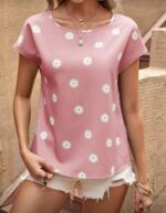 SHEIN Clasi بلوزة نسائية طبعات مطبوعة بأكمام قبعة صيفية عارضة ذات الحاشية العشوائية