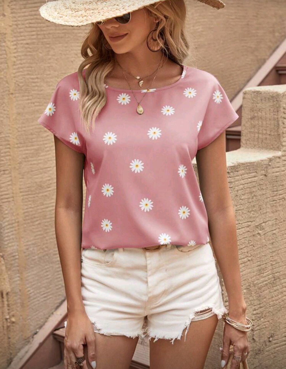 SHEIN LUNE بلوزة بطباعة زهر اقحوان اكمام جناح الخفاش