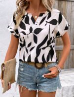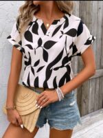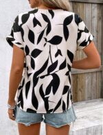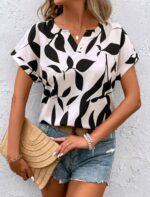 SHEIN Clasi بلوزة نسائية طبعات مطبوعة بأكمام قبعة صيفية عارضة ذات الحاشية العشوائية