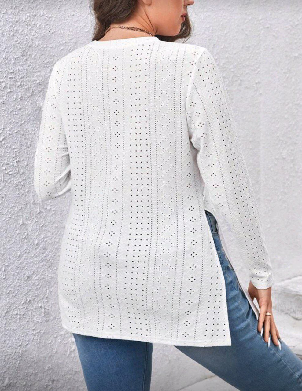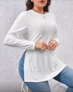SHEIN LUNE قميص كاجوال بأكمام طويلة من قماش ذو ملمس، مناسب للخريف/الشتاء والعطلات، مقاسات كبيرة