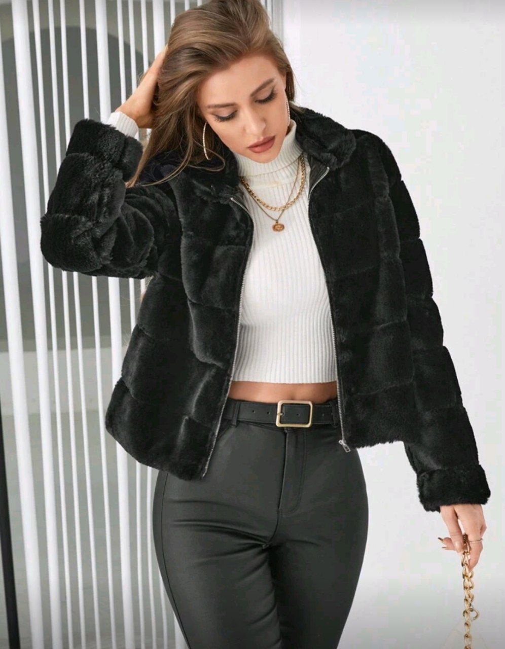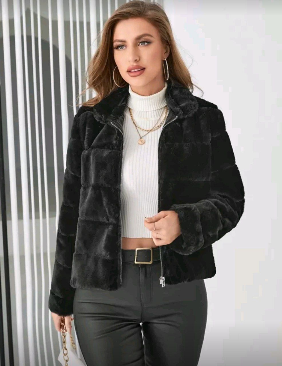 SHEIN Privé معطف سستة زغبي