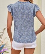 SHEIN VCAY بلوزة بطباعة أزهار اقحوان خط عنق مفتوح اكمام فراشة