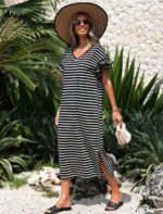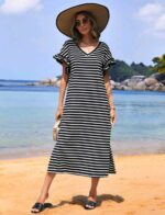 SHEIN VCAY فستان نسائي بياقة V وطبعات مخططة