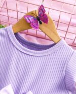 طقم بنات صغيرات أو رضع من 2 قطع ، ملابس علوية أبيض بأكمام منتفخة على شكل قلب ، وتنورة زهرية بشكل فراشة في فصلي الخريف والشتاء